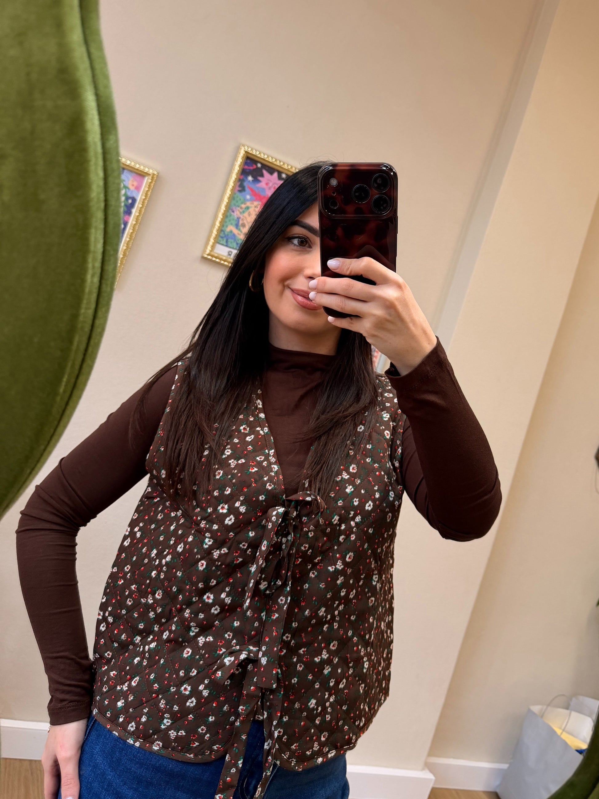 Color cioccolato con fiorellini e chiusura a fiocchi