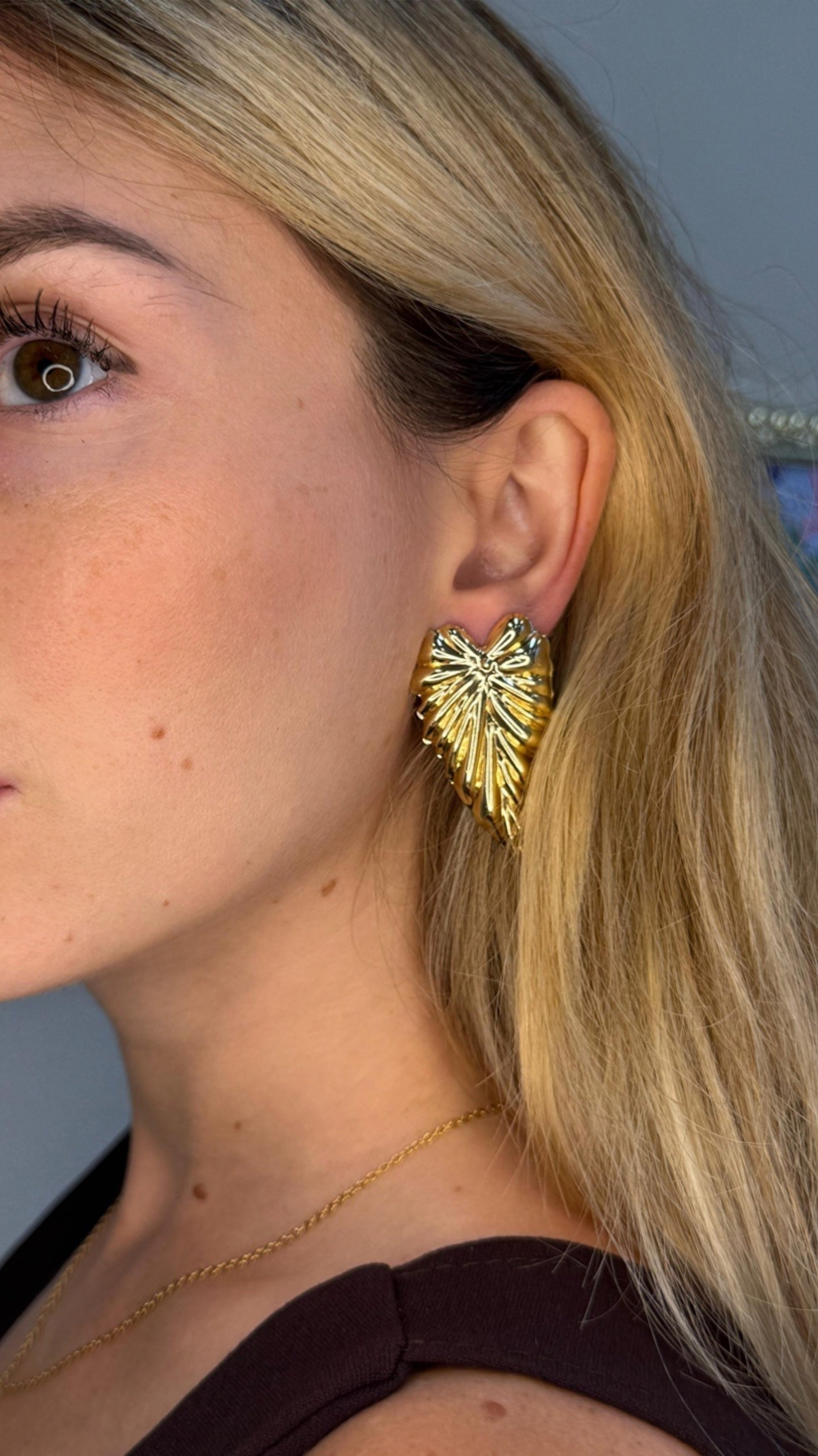 Orecchini Foglia Cuore Gold/steel